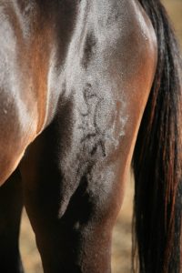 Ja, Parsifal (Ex-Van Gogh), ein elfjähriger Trakehner, den ich 2013 in Alicante einem skrupellosen Pferdehändler abgekauft habe. Der Trakehnerverband hatte mich um Hilfe gebeten, nachdem eine Frau das Brandzeichen des armen Parsifal erkannt hatte. Ein weiteres traumatisches Ereignis mit glücklichem Ende!